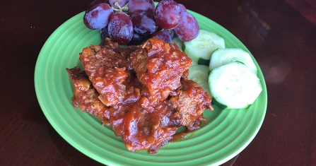 Baked first then simmered in a sauce, these meatballs are a go-to every New Year’s Eve. They’re not the roundest meatballs, but you don’t notice once they’re covered in thick sauce. FYI, it does take a lot of ketchup, so make sure you buy a big enough container. One time, we also accidentally left the meatballs in the oven a little long and were afraid that they were too dark and dry to eat. But once they got in the sauce, you couldn’t even tell.