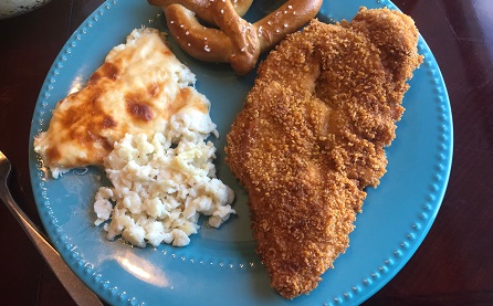 I remember in Vienna, there was a restaurant that the missionaries called Herb’s–but it was really called Schnitzelwirt. It was like a rite of passage for an elder to finish the giant Wienerschnitzel and all the accompanying fries. I’m pretty sure I also did it–and I went back there with my mom when we went to visit. Traditionally schnitzel is served with fries and a lemon wedge–or maybe with potato salad.
