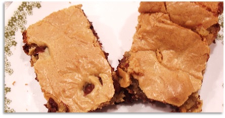 Not sure why these are called Congo Bars, but they’re basically slightly gooey chocolate chip cookie bars–and we always begged my mom for them when we were kids. Although, the last time I made them, they didn’t seem sweet enough. Maybe I’ll try the recipe again and update it. In any event, I have many fond memories of these treats.