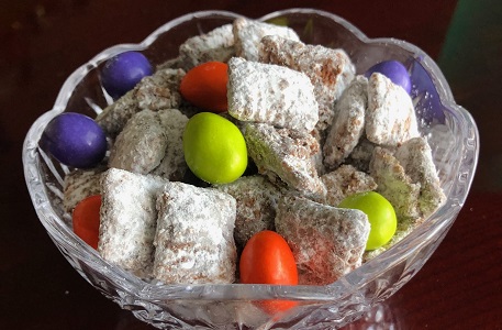I’ve always enjoyed Muddy Buddies, and now that I have celiac, I eat them a lot more because they’re naturally gluten free. We always seem to have Rice Chex around the house now, as well as the rest of the ingredients. I’ve even used milk chocolate chips, and it was still delicious. This recipe is straight from Chex itself, and it’s always a winner. Sometimes we’ll even put in seasonal M&Ms to add color and fun, like Valentine or Halloween M&Ms.