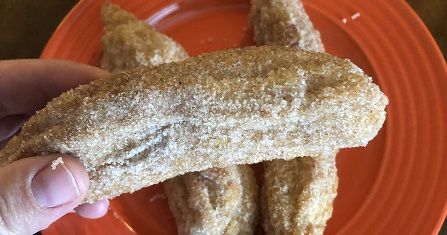 If you’re making these gluten free, I do like to add a little extra cup for cup flour and cook them a little longer (that seems to be fairly standard when making a gluten free version–adding a little extra flour and cooking a little longer). These are amazing as gluten free, and I would’ve had no idea. Although, when you’re mixing the choux dough, it looks more like oatmeal than smooth dough–but they cook just fine. And the picture below is of a gluten free churro.