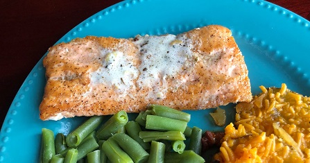 Pan-seared salmon is great if you’d like a little bit of crust on your salmon or if you’re trying to make it really fast. The baked one goes pretty fast too, but we generally opt for the pan-seared one lately. Just make sure to press out extra water from the salmon so it sears better.